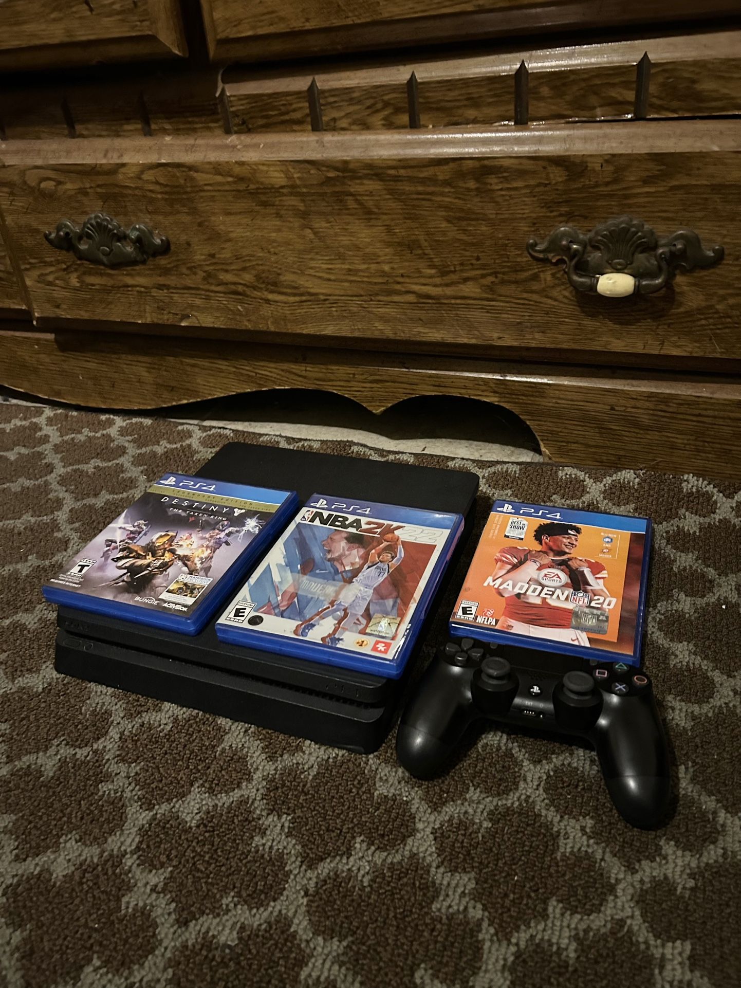 PlayStation 4 Slim console in good working condition. Fully tested and works perfectly. Clean system with normal wear from use. Great bundle — plug in and start playing right away. Perfect for kids, casual gaming, or a first PlayStation setup. Local pickup today and delivery available. I charge a fee for delivery Cash payment only