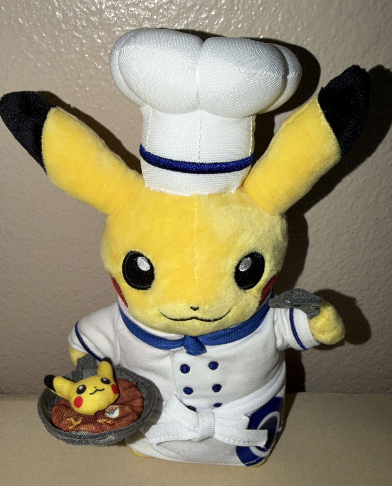 2018 Pokemon Center Cafe PIKACHU Chef Plush 8.5” SOLD ONLY IN JAPAN