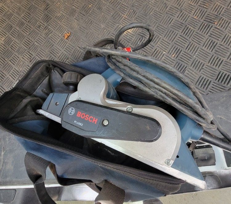 Bosch PL1682 6.0A 3-1/4 inch Planer in good working condition. With its 120V power source and 6A ampere, it can efficiently plan up to 3 1/4 inches wide material. The planer features one blade that can easily be replaced when dull. Its corded electric design ensures that you always have power while using it. The planer does not come with a dust bag but does include a carry bag.