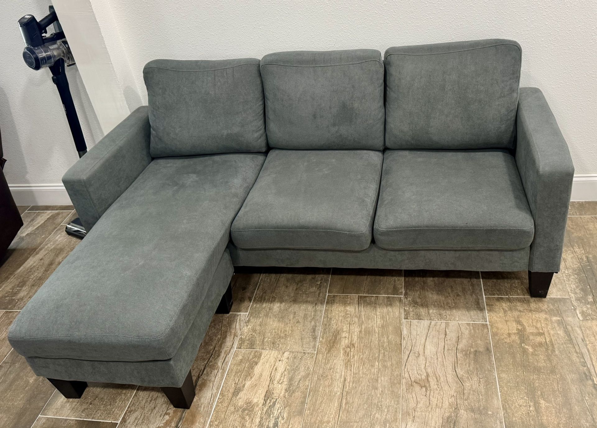 Convertible sectional sofa couch, fabric, L shaped sofa with 3 seats. Removable ottoman. Dimensions: 45.66” D x 71.65” x 33” H. Excellent condition.