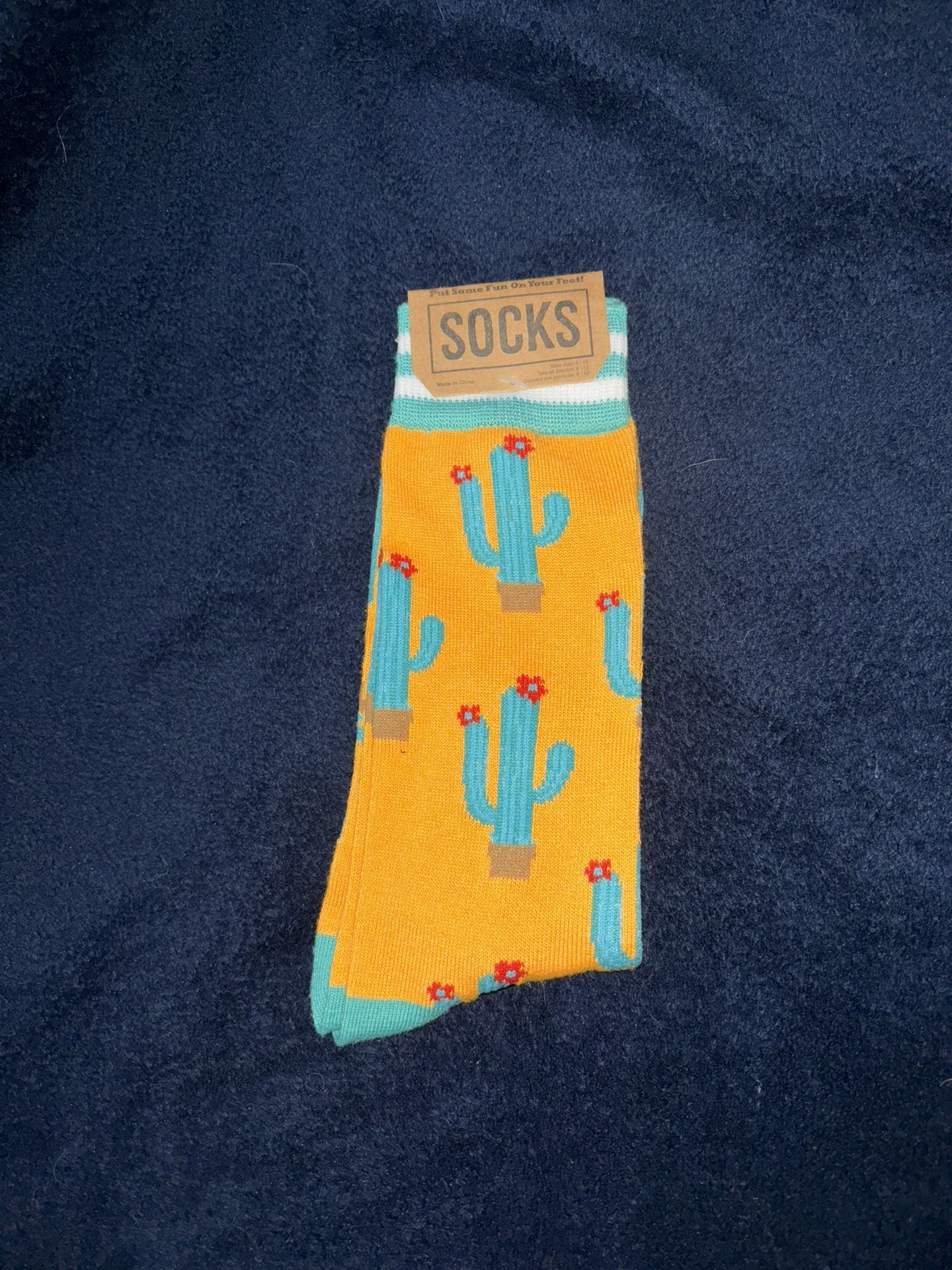 Yellow and blue cactus print socks (Bioworld) men’s size large
