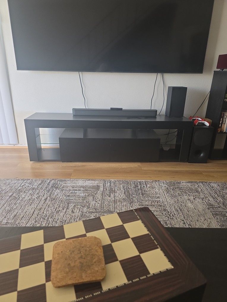 Tv stand for sale with 2 drawers and 2 glass shelves. Can hold up to 75inch tv