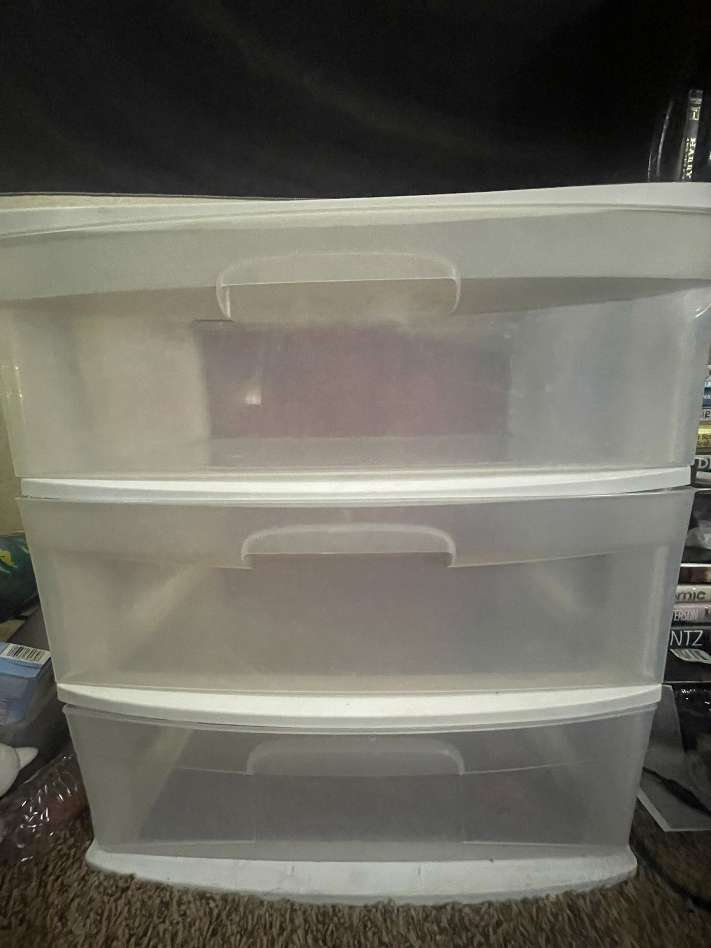 2 plastic dressers 20 for both each come with 3 drawers, can stack them to make one 6 drawer dresser