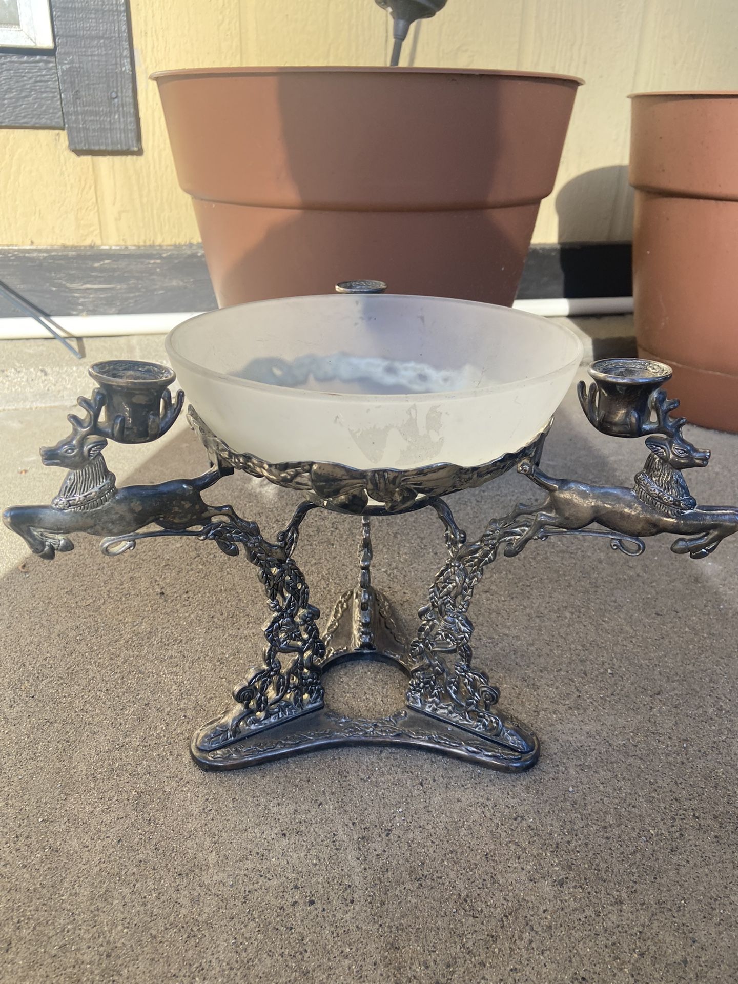 Vintage Silverplate Godinger Reindeer Bowl & Candle Stand Christmas Centerpiece