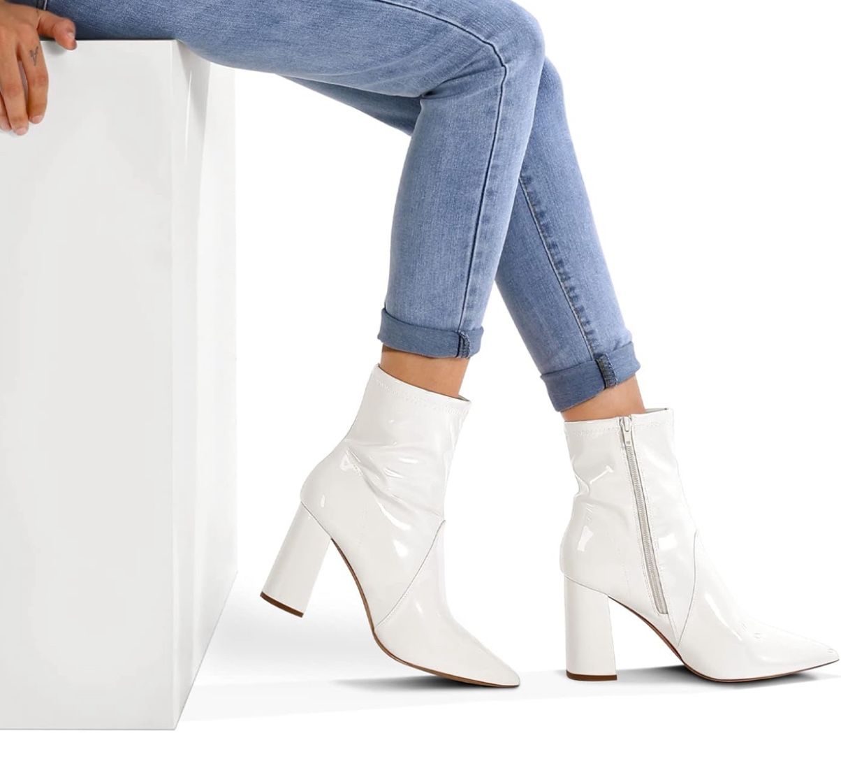 New size 8 【3.5-Inch Chunky Heels】 Heel height of measures approximately 3.5". The chunky boots have a block heel is nailed firmly into the sole for added comfort and stability while walking. 【Smooth Side Zipper】 Pull-on style ankle boots with a side zipper design are easy to put on and take off, and the special process will not pull the hand. These booties' outsole with rubber outsole is more non-slip. 【Supportive Footbed】 The soft 3mm latex footbed provides cushioning and a comfortable wearing experience. And ankle boots the elastic design at the ankle can be well matched to the ankle size. 【PU Upper】These women’s fashion boots vamp are made of patent leather are waterproof, moisture-proof, not easy to deform, it's easy to clean and take care of. The PU upper and pointed toe design adds a stylish touch.