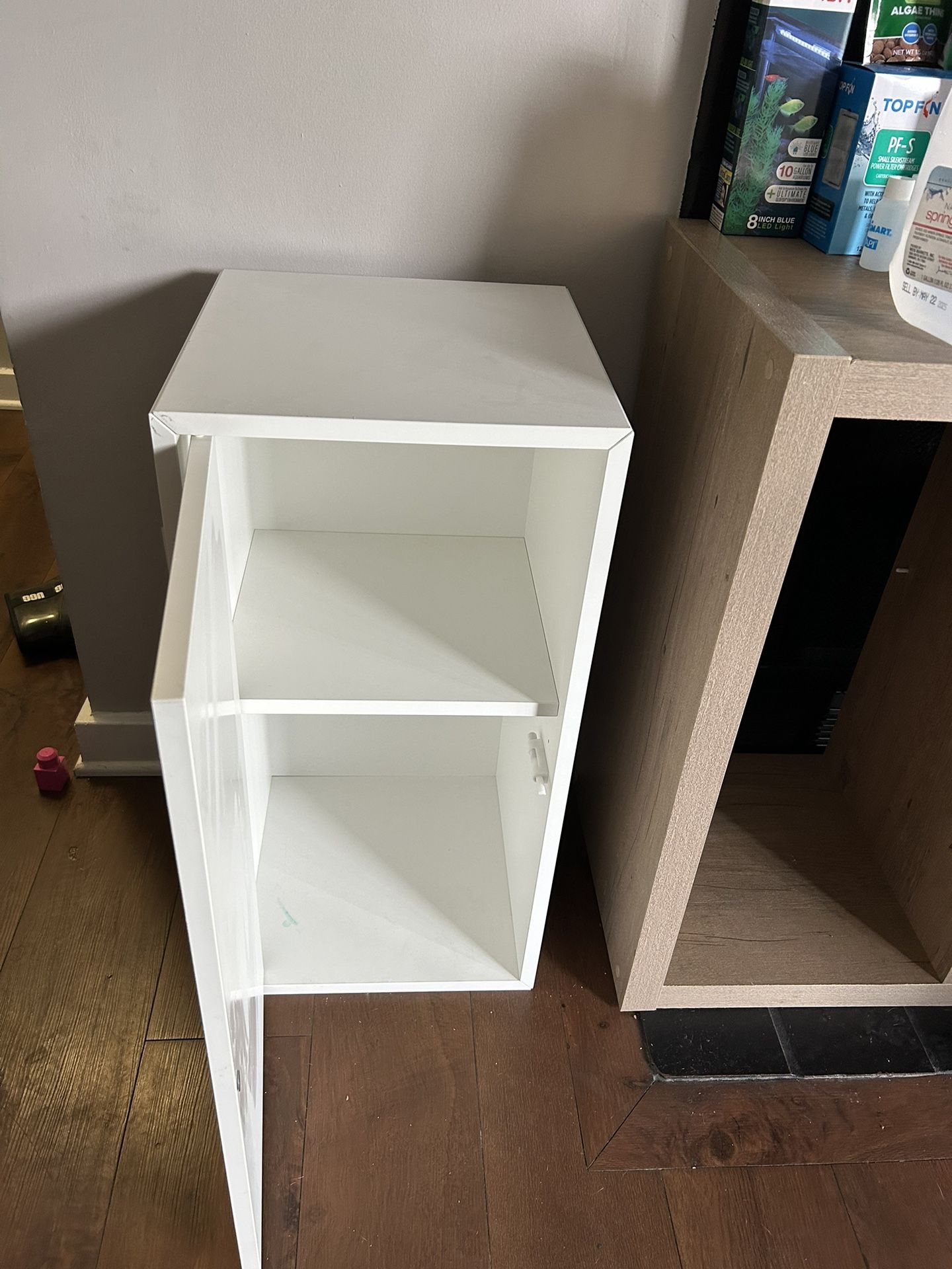 • Good Condition • No handles needed, you push the door in so that the door pops open & same to close it • Great to store small items or accessories