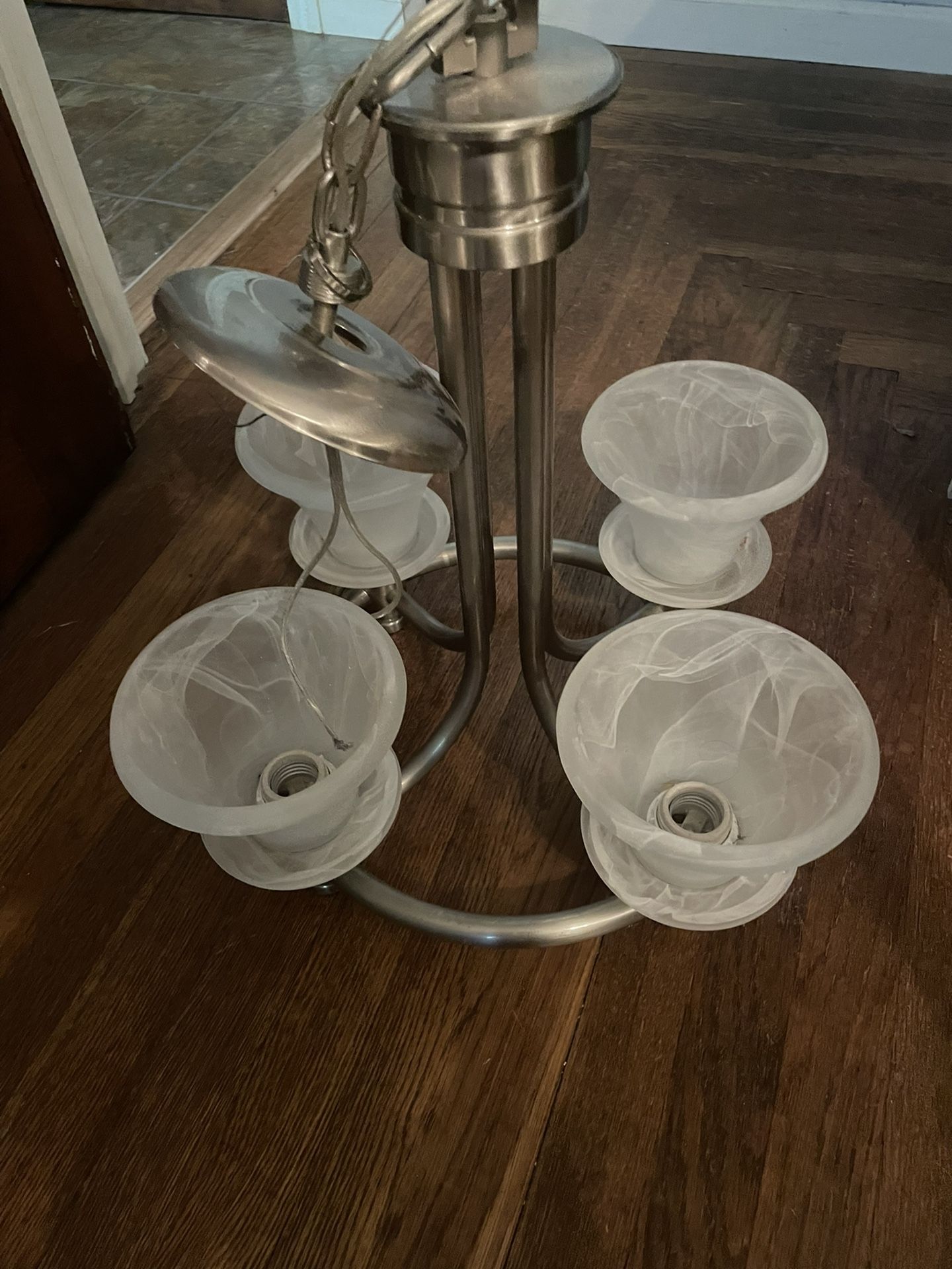 Chandelier silver nickel polished type color with 4 frosted lights. 50$