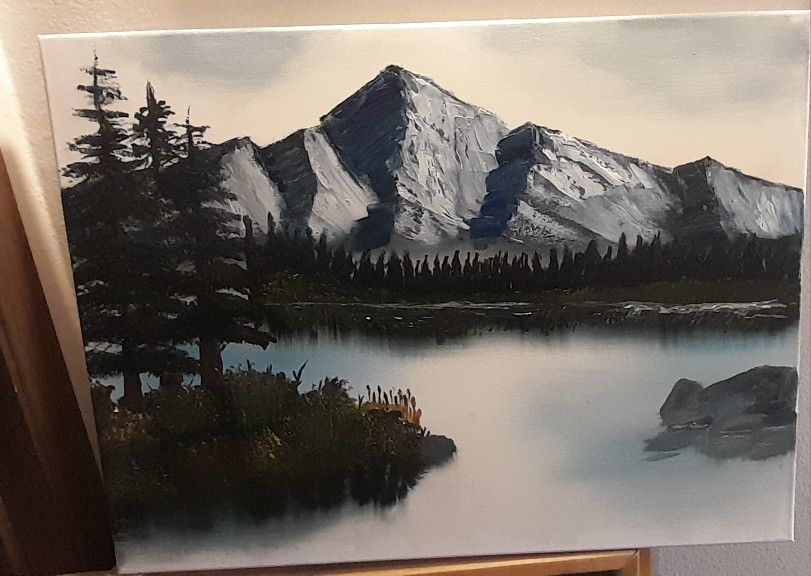 Hand painted oil on canvas 18x24 of a beautiful one scene first lake and mountains it's absolutely gorgeous and will be the perfect addition to your home or office space