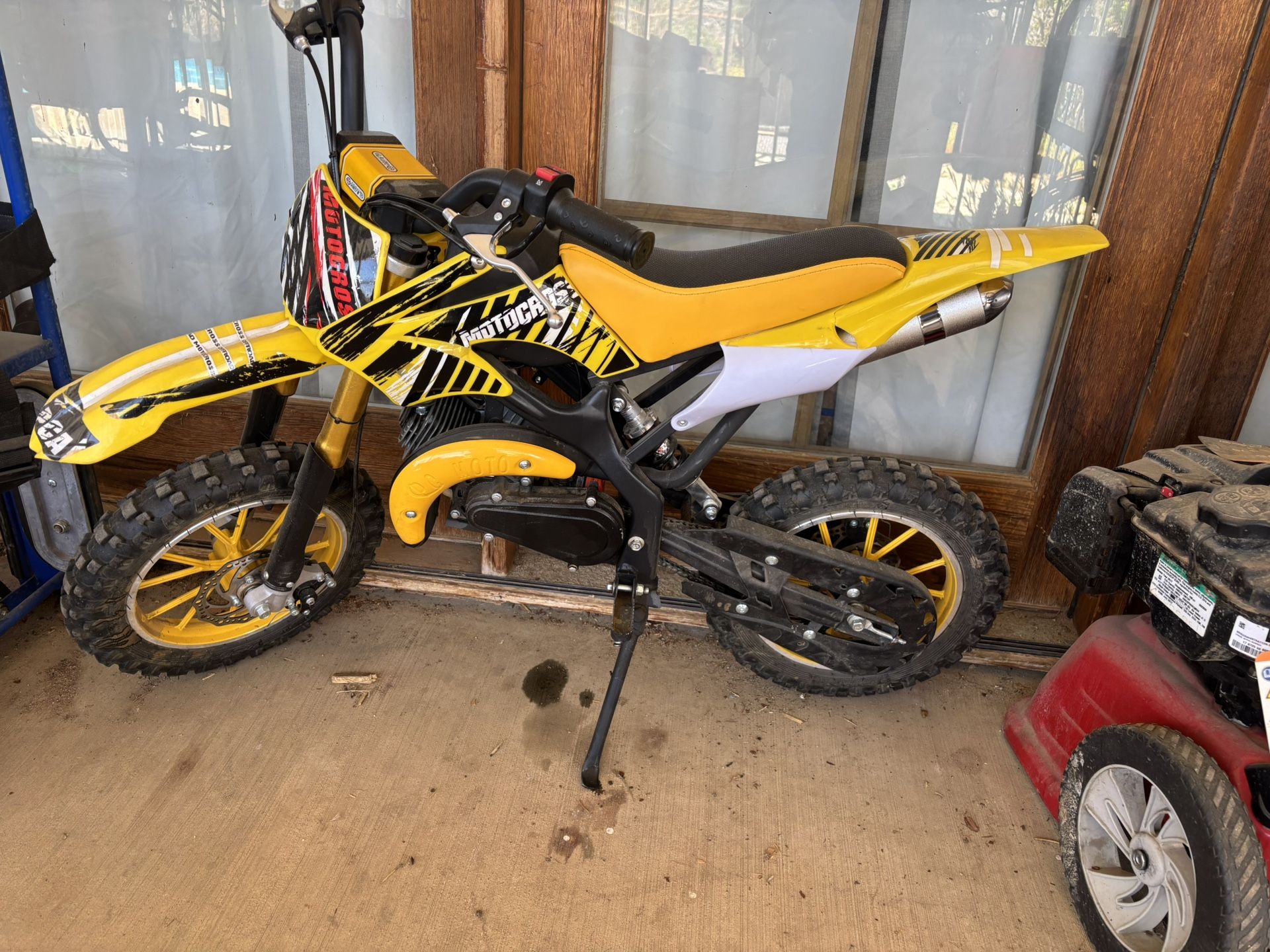 I got it for my nephew but he’s hasn’t been behaving in school so he hasn’t ridden it in over 2 months and now he’s still not listening so time to sell it. It runs and it was running fine but now it bogs out. So it’ll need a carb clean or you can just buy a new one cheap on Amazon. The bike is pretty new about 2 years old $175 obo