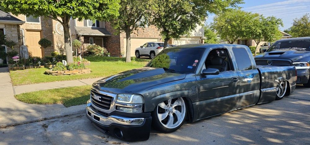 Bagged Gmc Sierra on 22s intro wheels Running an Airlift bagging system Needs new battery And A/C needs more Freon