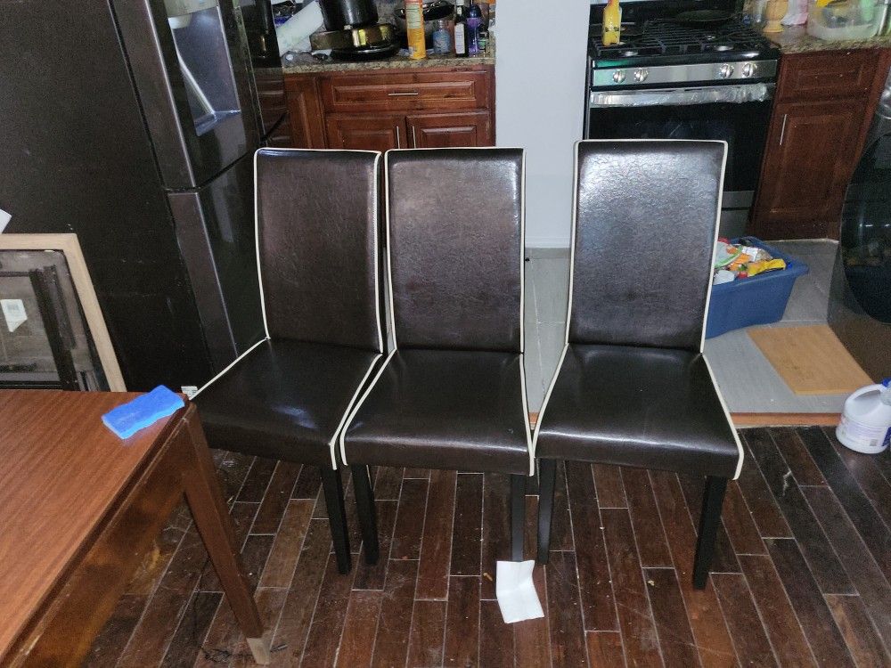 The table and 4 chairs are brand new no scratches rips we had them for two weeks it is not the shape that fits our home
