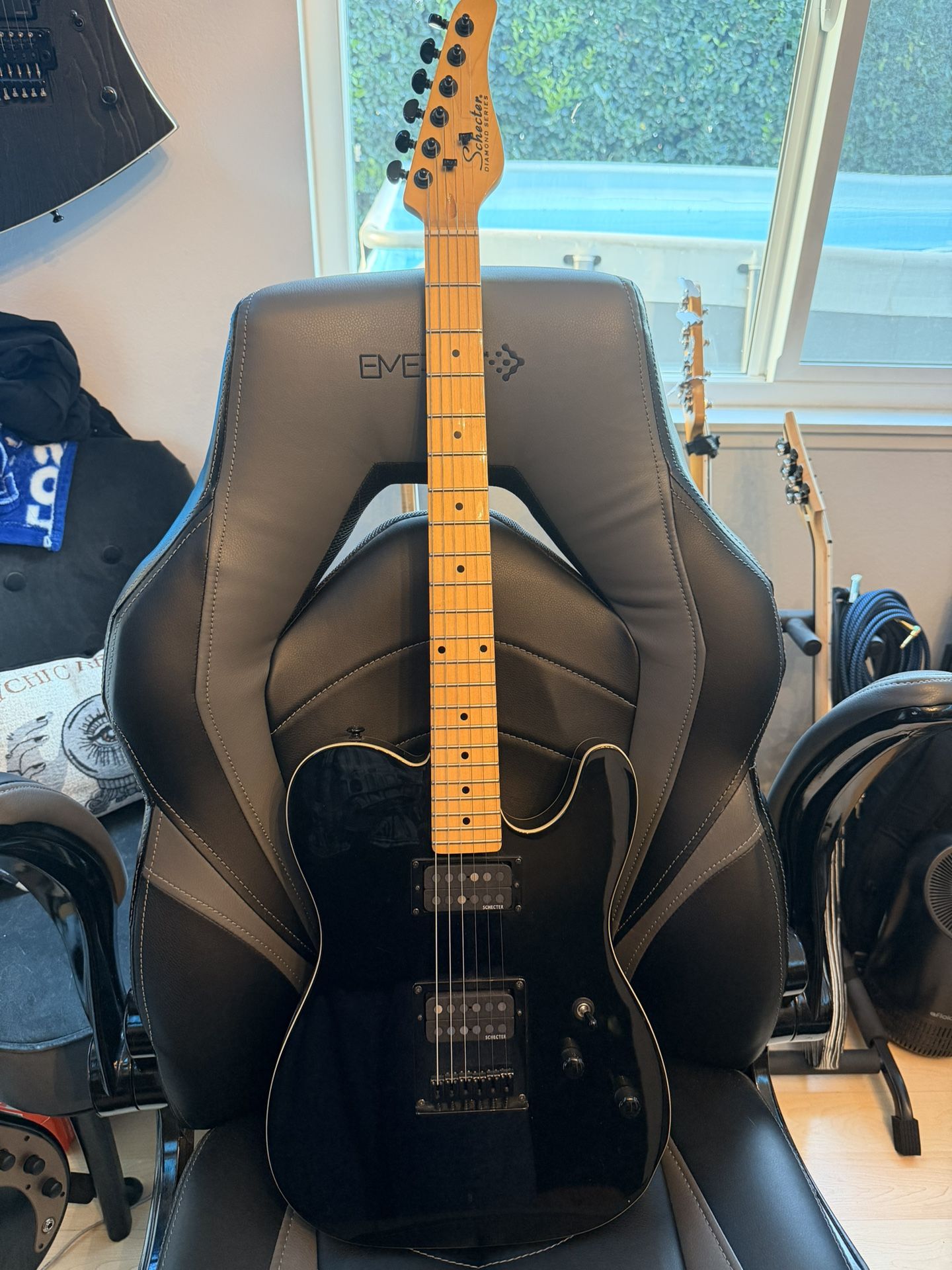 Incredible guitar! Sits in my studio and needs someone to play it! Just recently set up with new strings, cleaned and pickups serviced. Active/passive push/pull knob for single coil neck/bridge. Comes with Schecter hard shell case. $500 obo