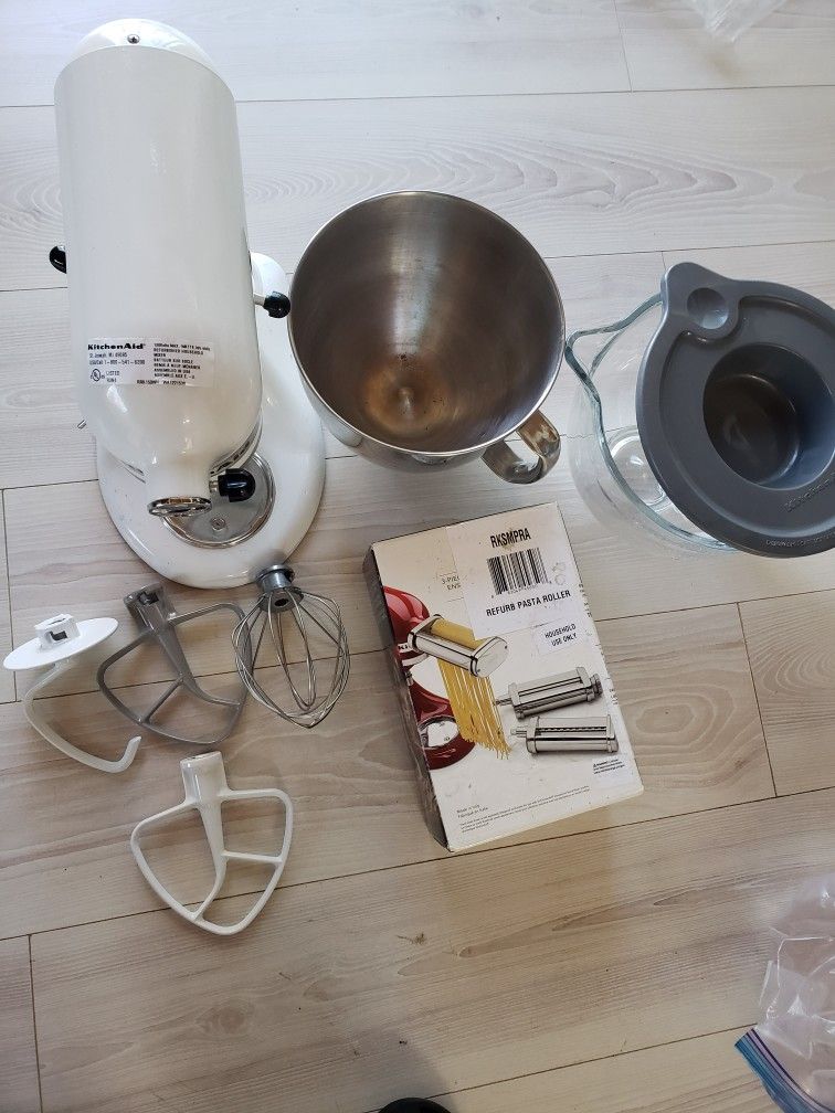 KitchrnAid Mixer With Noodle, Spaghetti Attachment And Glass Bowl