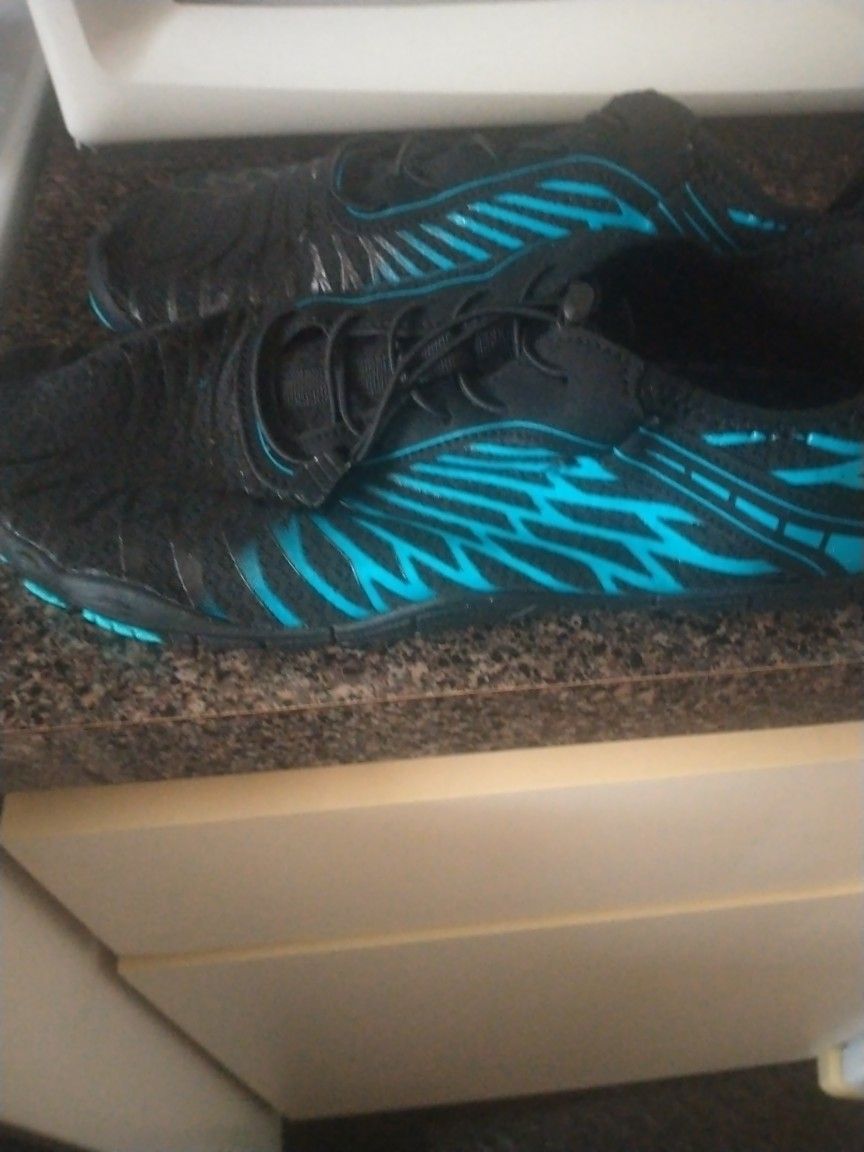 Brand new men's hike sneakers black with torquise size 11/1/2