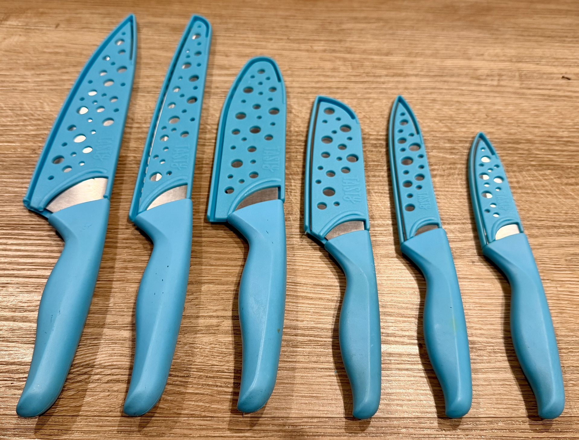 Set of 6 knives with covers. Also knife holder. If you only want the knives with covers without the holder for cheaper let me know.