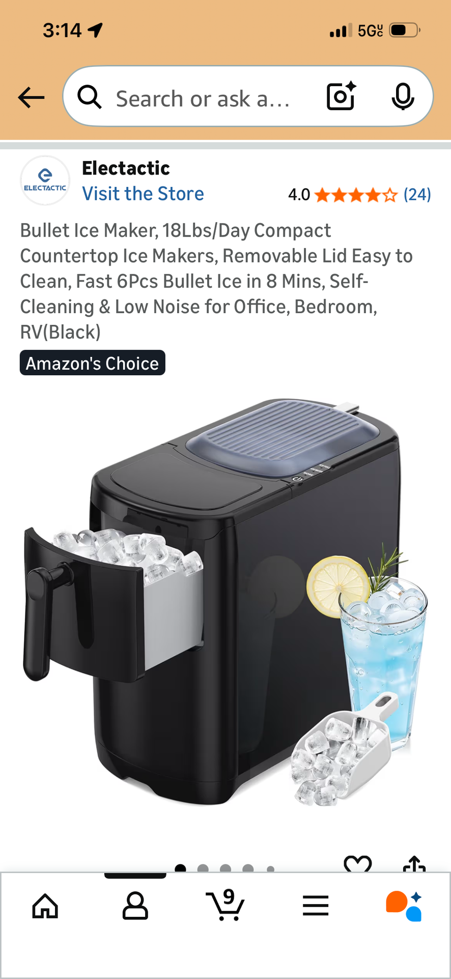 New Electactic ice maker. Still in box, never opened. This compact countertop model makes 18lbs of bullet ice a day. Super fast, makes 6 pieces in 8 mins. Has self-cleaning function and low noise. Black color. Good for office, bedroom, or RV. Must pickup in Fullerton.
