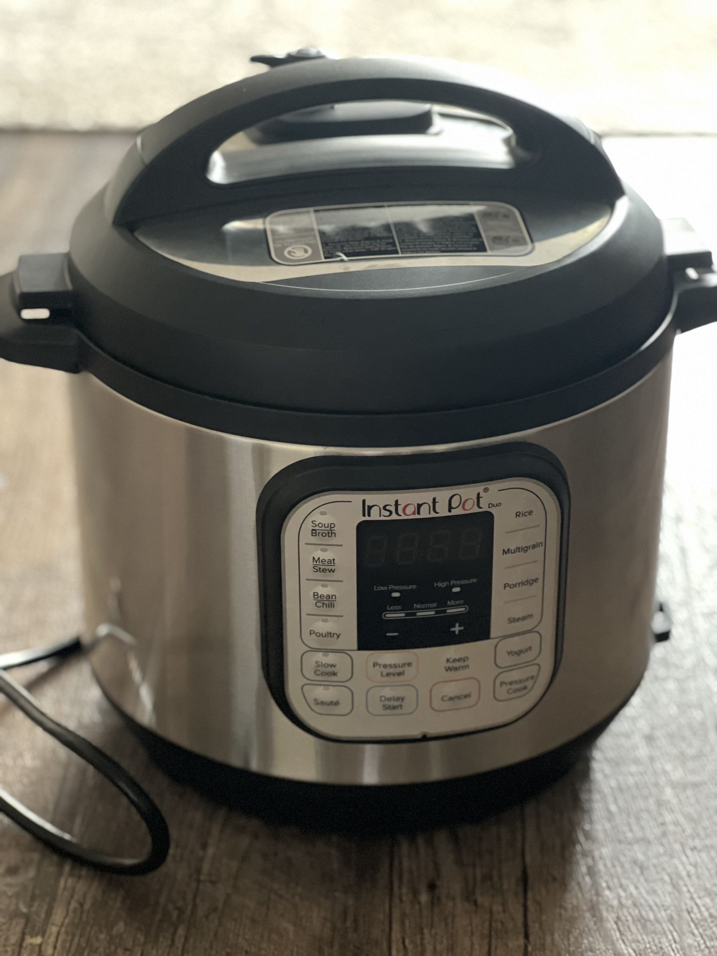 Instant Pot Duo 7-in-1 Electric Pressure Cooker, Slow Cooker, Rice Cooker, Steamer, Sauté, Yogurt Maker, Warmer & Sterilizer, Includes App With Over 800 Recipes, Stainless Steel, 6 Quart. Less use and like new.
