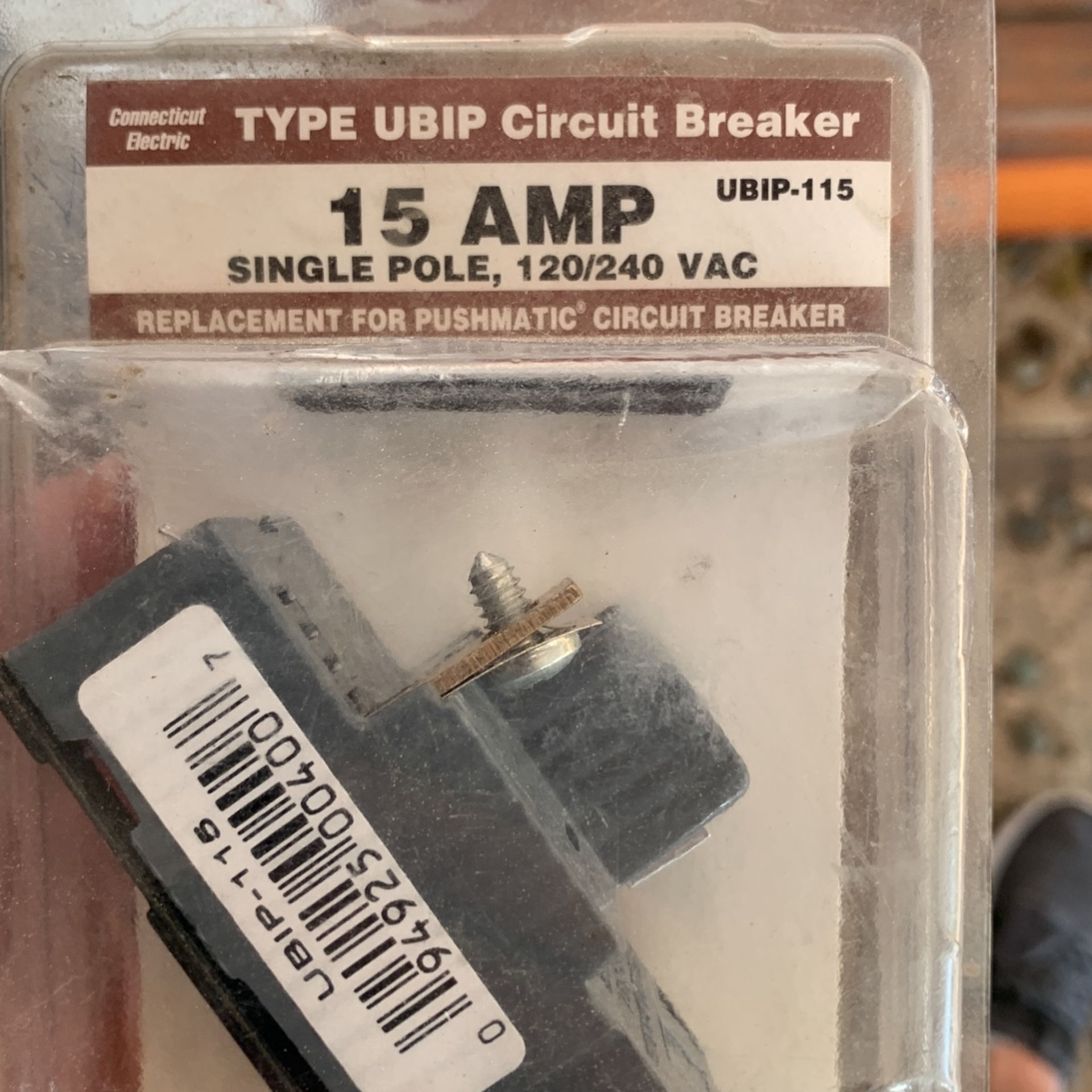 Type UbIp Circuit Breaker 15 Amp Single Pole, 120 240