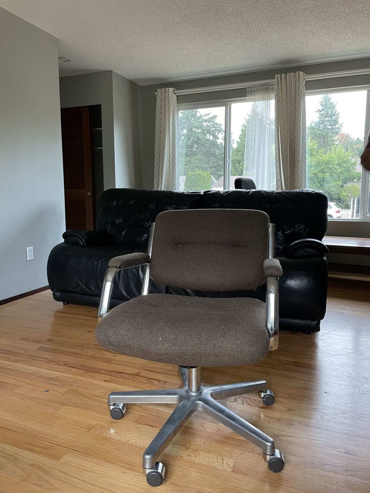 Brown cushioned rolling desk chair. Moving and would like to sell instead of trashing it. Pickup only please.