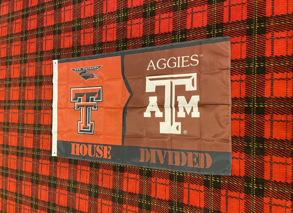 Brand new 3 foot by 5 foot. You can hang it up inside or outside. Would make a great addition to any man cave. Texas Tech Red Raiders banner flag Texas A&M Aggies banner flag