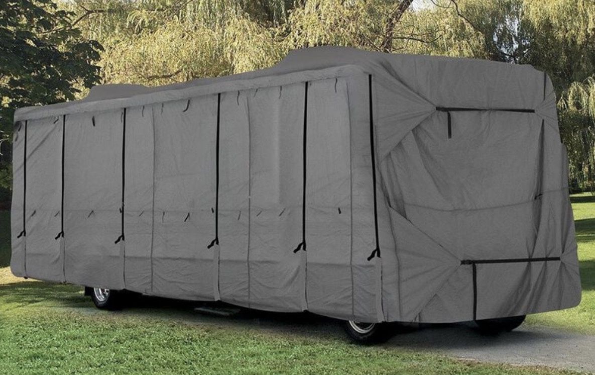 Cover for a 38 foot Motorhome. Cover allows access to Motorhome without having to remove the whole cover