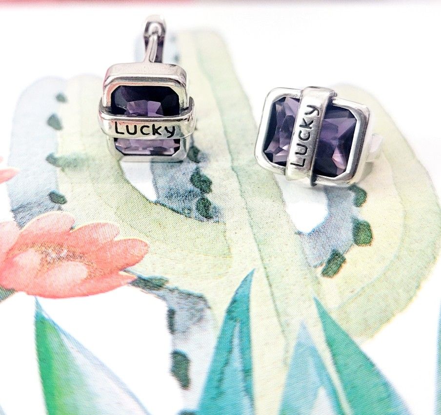 925 sterling silver women's lady's Purple Stone Lucky Hoops Earrings Gift