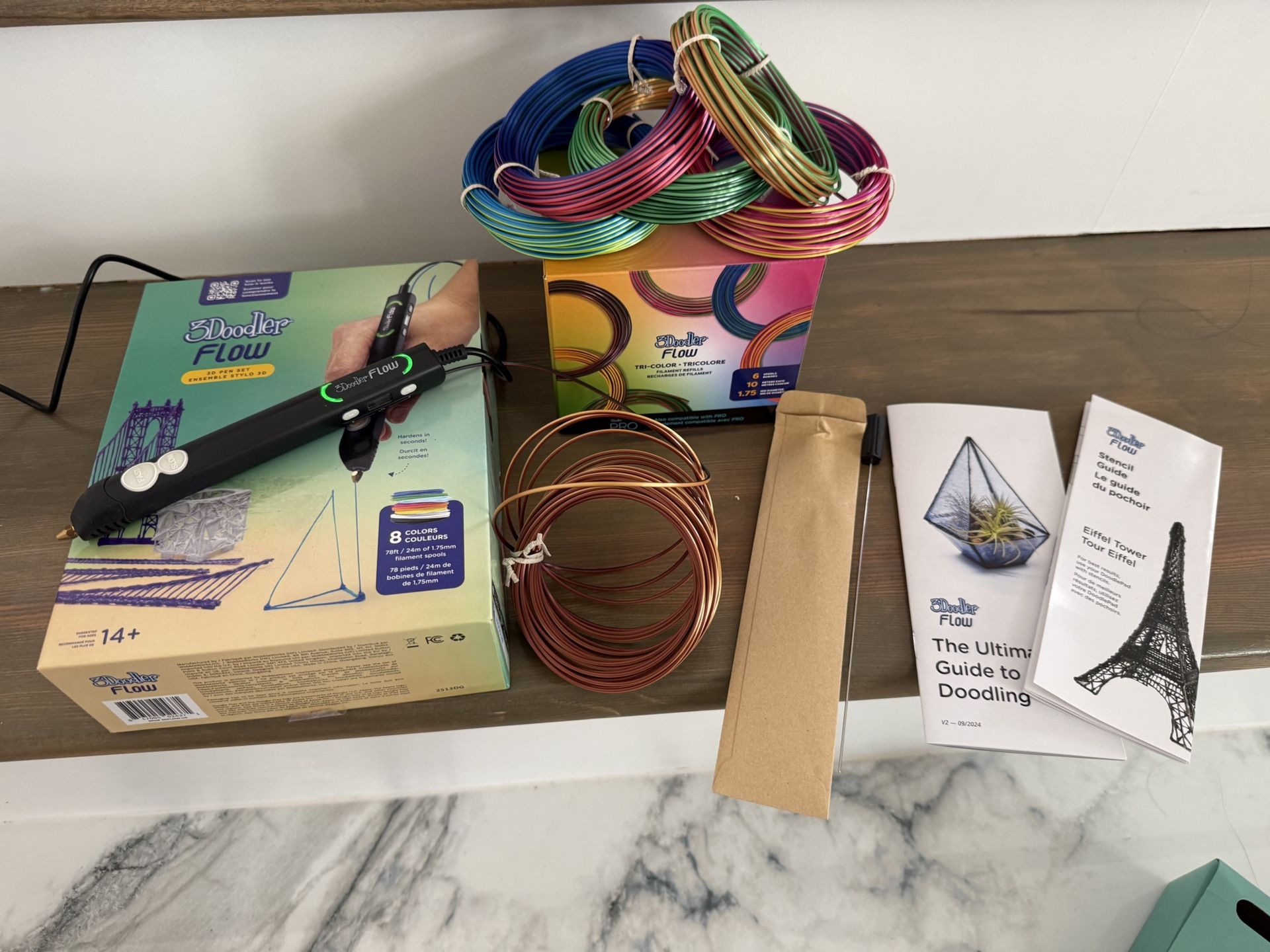 PRACTICALLY BRAND NEW bought it for the kids They are not interested NEVER USED, only to test it out THE MOST RELIABLE 3D PRINTING PEN WITH MULTI-FUNCTIONAL COMPATIBILITY: From the creators of the world's first and best 3D Pen, the 3Doodler Flow! Compatible with 1.75 plastic filaments such as PLA, ABS, and wood. The integrated LCD provides real-time temperature monitoring to ensure smooth 3D printing. EASY AS 1, 2, 3D!: Designed to be user-friendly, with no complicated software or hardware setups. Just plug it in, insert 3Doodler Flow plastic, wait for the 3D pen to heat up and starting creating with ease! Build and draw 3D structures, freehand or on stencils, with extruded heated plastic that hardens almost instantly! FUN & SCREEN-FREE PLAY: A whole new creative experience that brings out the value of engaging in tactile, hands-on activity in a digital age. For teachers and students alike, this is an excellent resource for learning. ENJOYABLE PRACTICAL TOOL: Make handmade gifts and decorations, even regular DIY and household repairs are easier with the 3Doodler Flow 3D pen. It’s also compact and light-weight so you can take your Flow on-the-go! WHAT'S IN THE BOX: The 3Doodler Flow 3D Printing Pen comes with 8 different colors of plastic spools (80 feet in total) and a comprehensive activity guide book to teach you the basics plus a whole lot of fun and creativity