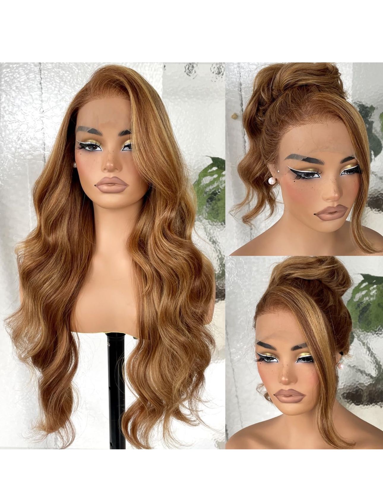 13x6 HD Glueless Lace Frontal Wigs Pre-Plucked, 200 Density Honey Blonde Sunkissed Highlights Synthetic Long Body Wave Lace Front Wig Ready to Wear, 26inch #4/27 Sunkissed Highlights XYDY