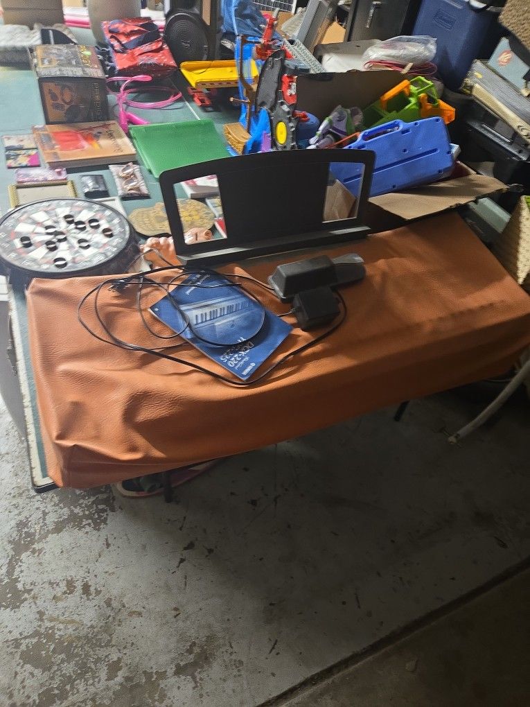 Has not been used very much at all, has been covered since purchase. Has manual, foot pedal and power cord