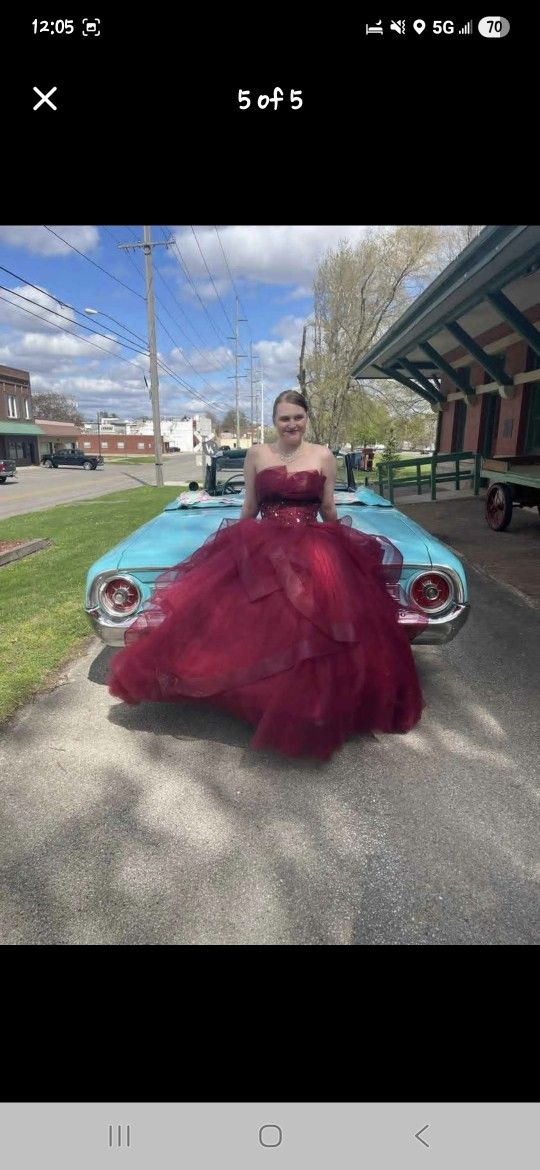New dress (ball gown) Will fit size 4 to 8 Built in bra Corset back