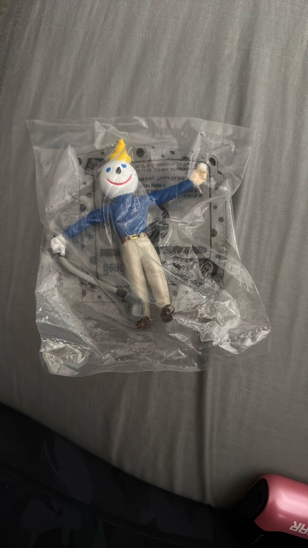 Two 1974 vintage Jack in the Box bendable figures, still in their original packaging. These figures are collectibles from the fast-food chain's kids' meal promotions.
