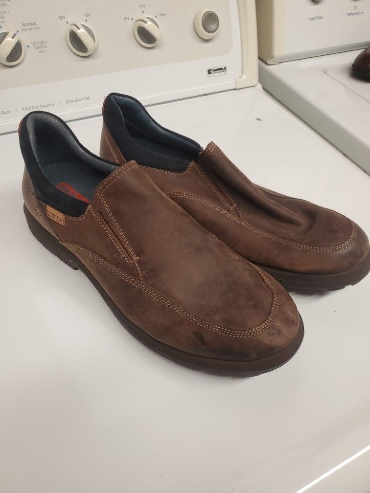 Loafer, made in Spain. Very good quality shoe. Right toe is slightly crumpled. Slip-on. EU size 41