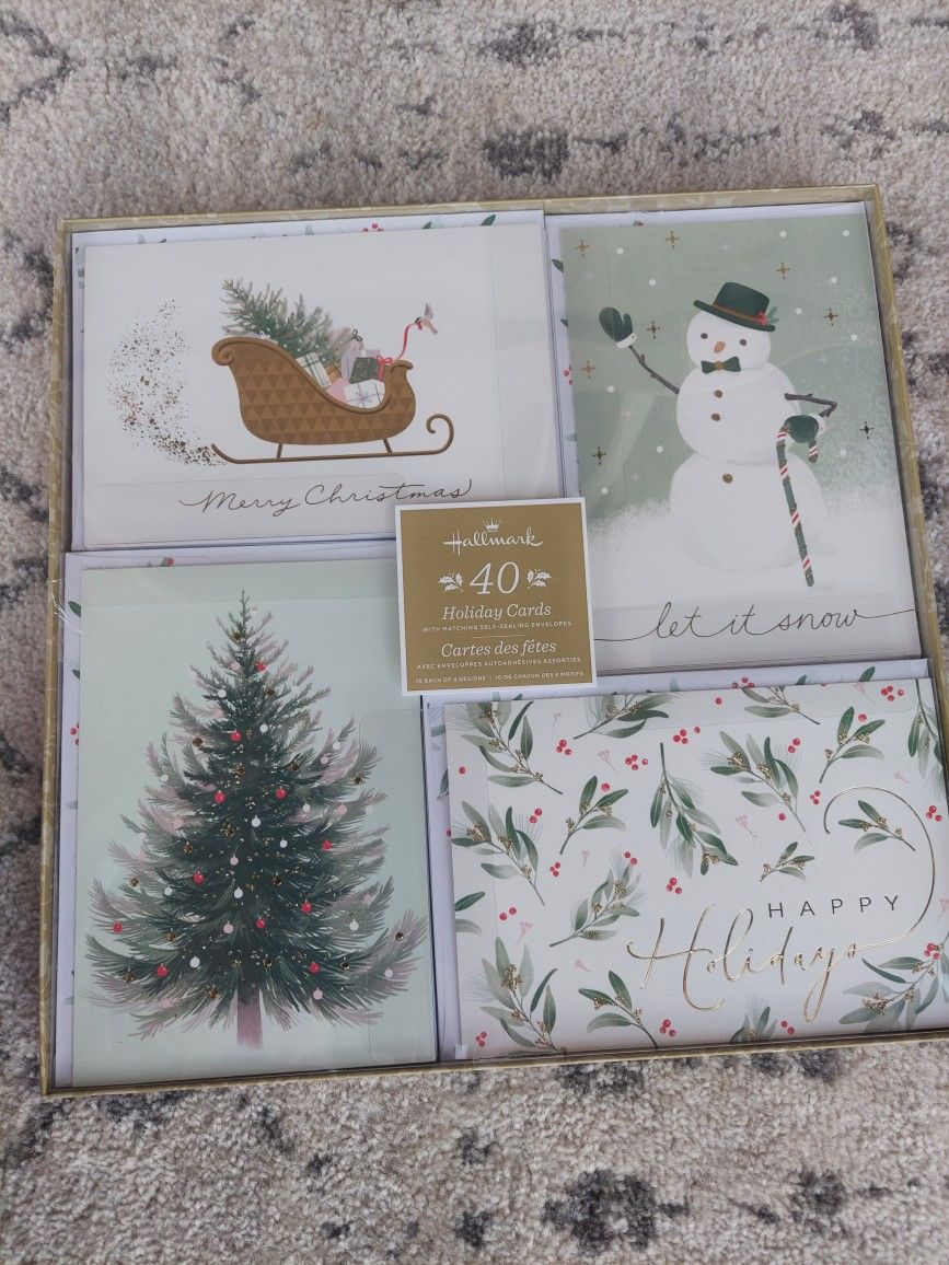 We have Hallmark Holiday/Christmas cards set, 40 pcs. Beautiful large cards with a sparlke, brand NEW.