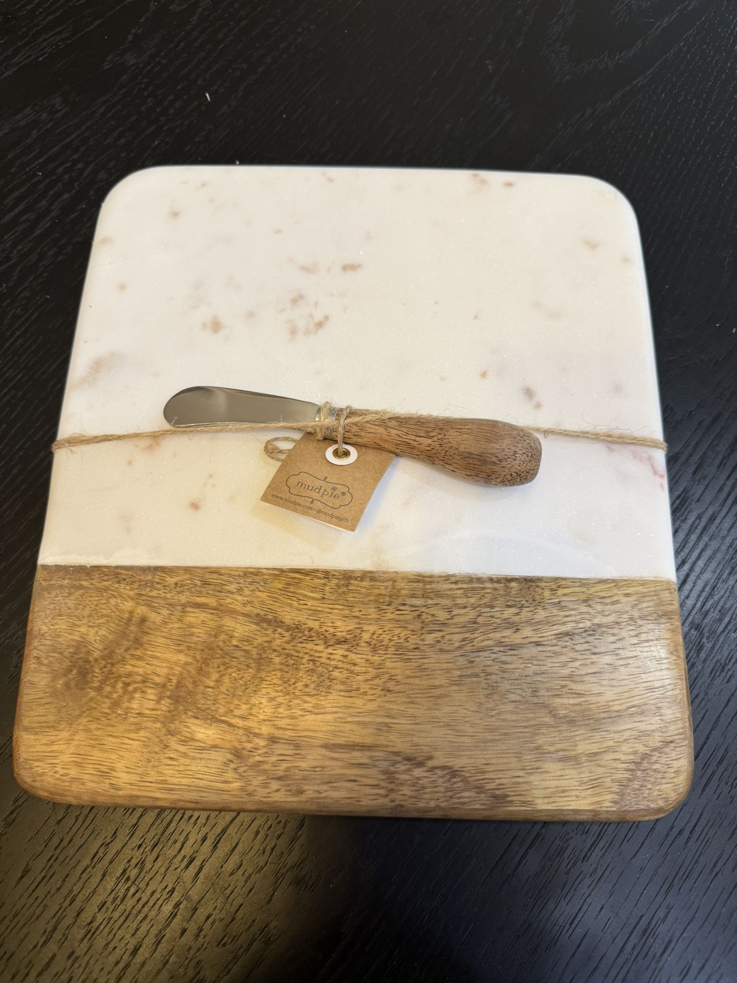 Brand new Mud Pie serving board made from white marble and natural wood, includes matching spreader. Great for cheese boards, appetizers, or entertaining. • Condition: Brand new • Board size: 10” x 10” • Spreader: 5.5” long • Marble & wood construction • Neutral, modern style Price: $18 First come, first serve. Local pickup at Southern & Higley.