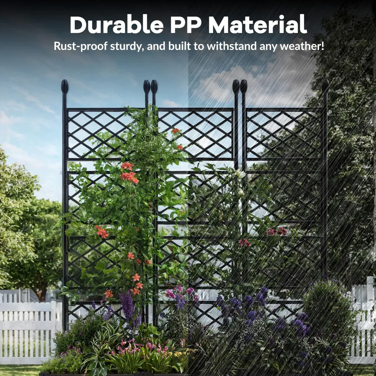 Garvee 3-Pack Plastic Planter Boxes w/Metal Trellis - Modular Privacy Screen & Raised Garden Bed for Balcony/Patio, Black