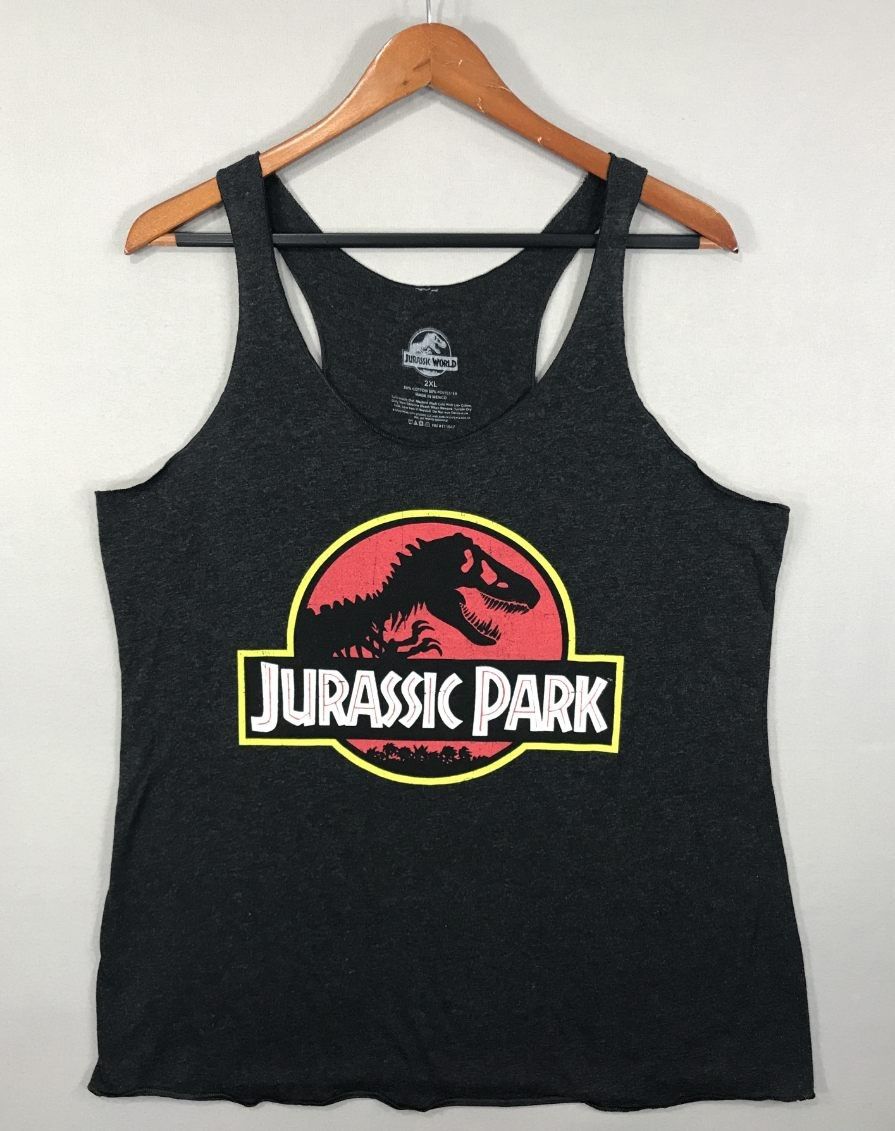 Jurassic Park Tank Top Women 2XL Gray Racerback Pullover Classic Logo Activewear