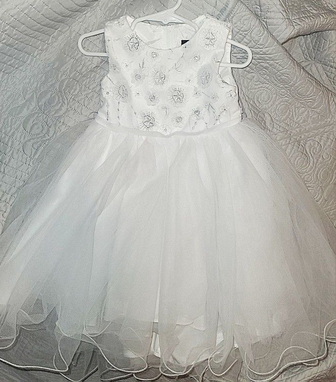 Little girls Elegant white dress sz 2t with floral embroidery and tulle skirt. Prefect condition Worn a few hours $20