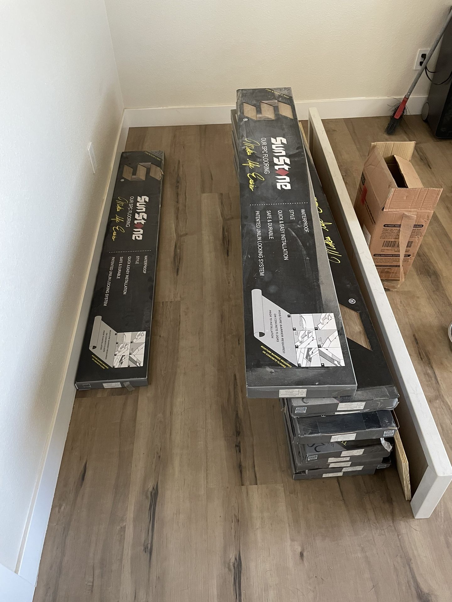 I have 12 boxes which is about 265sqft. It’s a light brown color. Message me if you are interested.