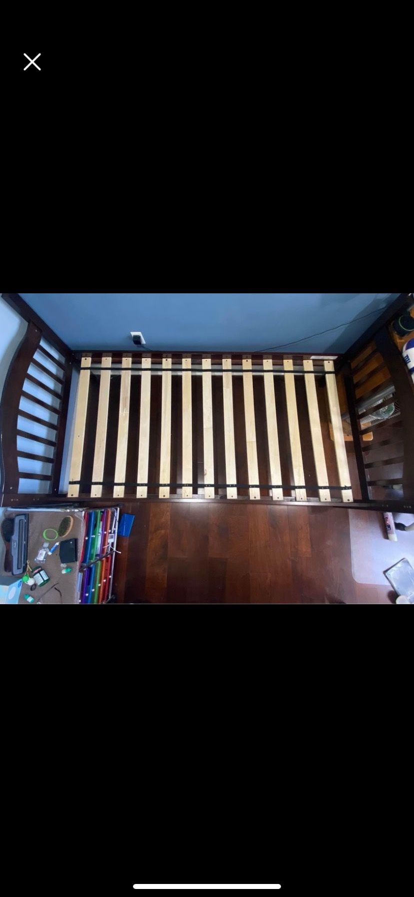Have low use original bunk bed or can use as 2 twin bed . Also have 2 twin memory foam mattress for sale . Local pickup only with cash no PayPal or nothing all for $400 2 mattresses and bed.