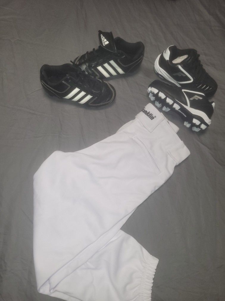 Cleats addids size 11. Franklin New size 10 Pants size small in youth. Fits for like 4 or 5 year old