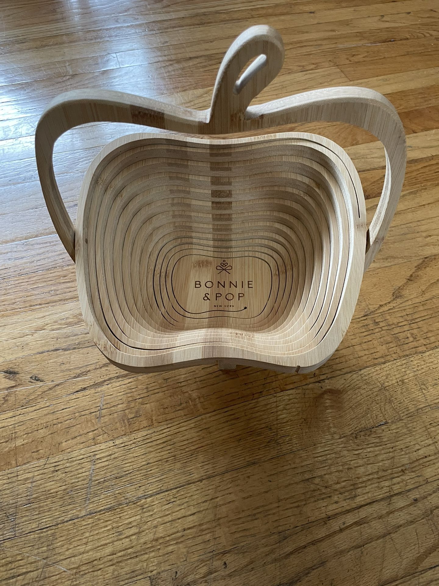 New Bonnie & Pop New York expandable wooden apple cutting board, fruit tray, and apple basket. As an apple basket, approximately 10.5” wide x 9” deep x 12” high. Pickup in Melrose Park. Cross-posted.