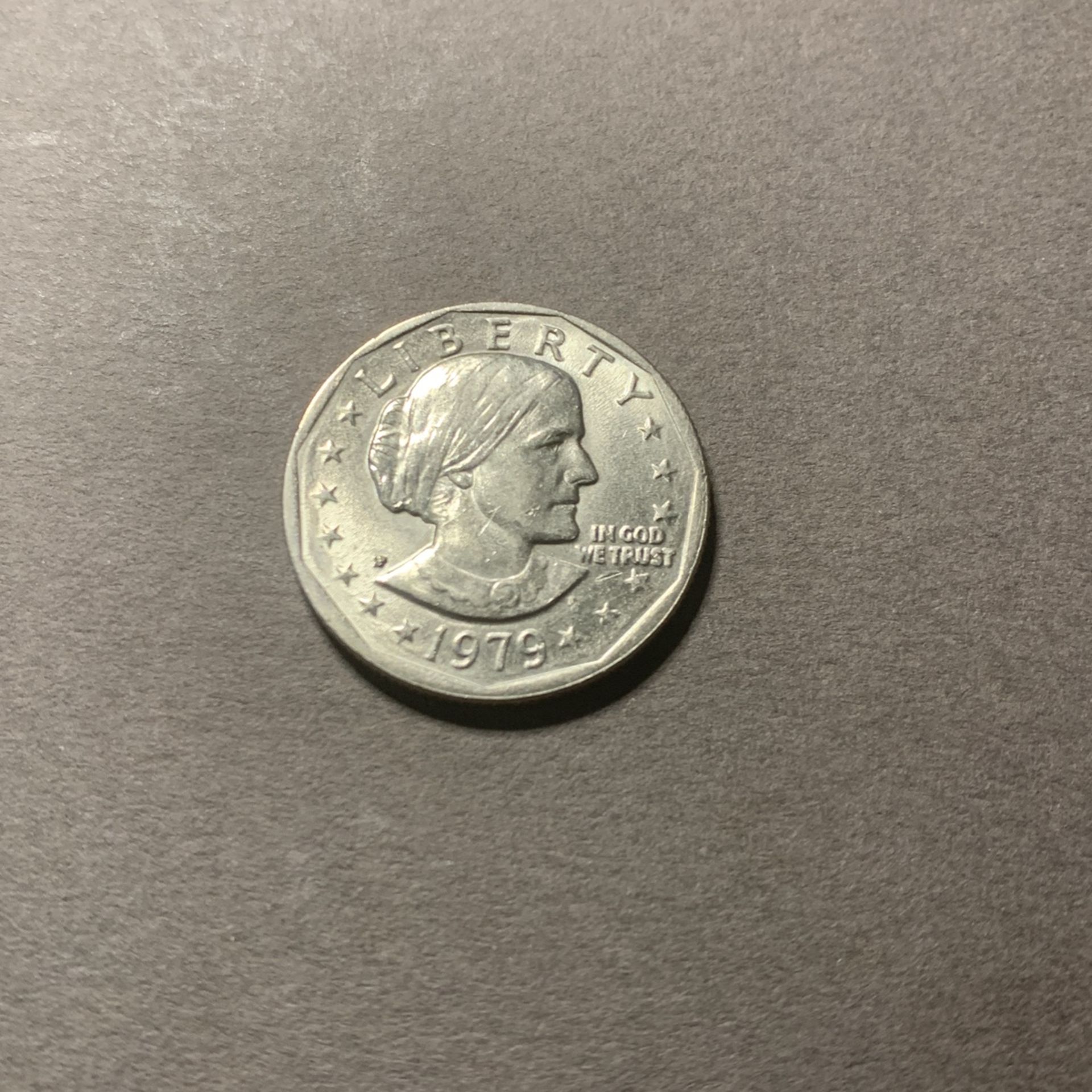 This 1979-P Susan B. Anthony Dollar Clad Mint State MS70 coin has never been used and is in new condition. Coin based off of the 70 number given to the state of the coin being “Mint State 70.”
