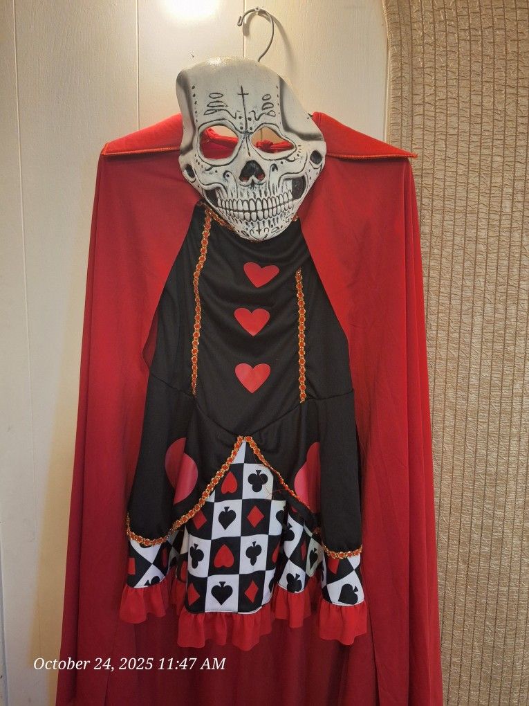 🎃💀Halloweeny Time!!!!! 💀 🎃 Woman's SKELETON Queen of Hearts ❤️ Costume. Size S/M. Selling for $20. Firm. Cash only. Pick up in Harwood Heights.