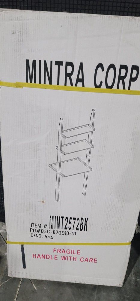 Never used black leaning desk and bookshelf. Never opened. Still in box. I have two.