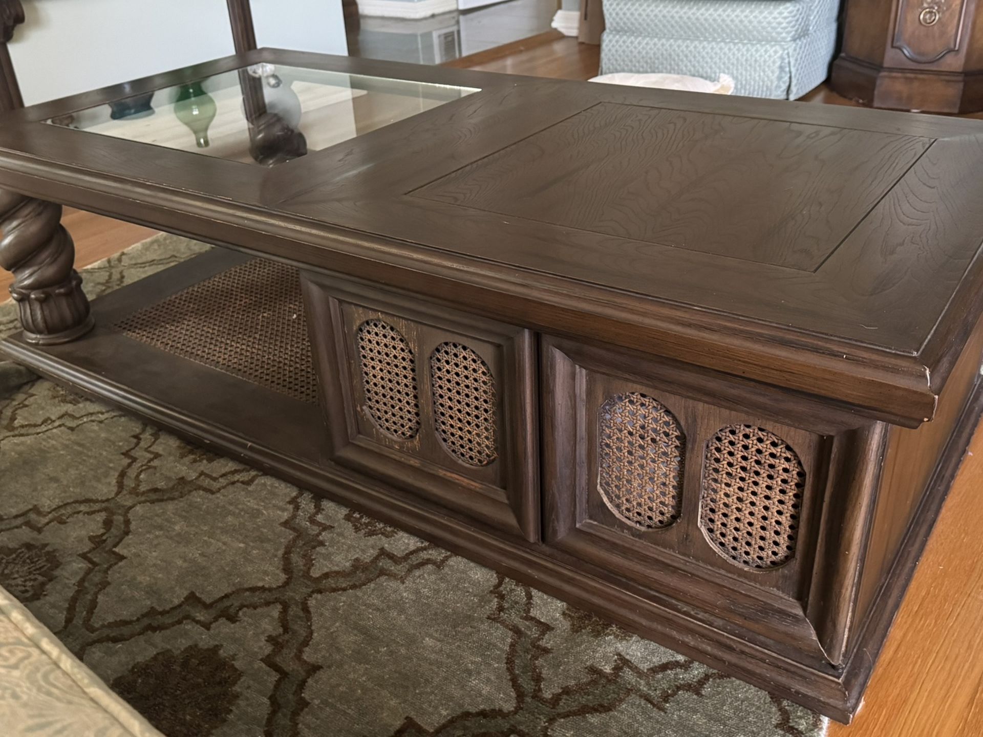 60” x 30” x 16”T Wood and glass Heavy Storage under Very nice