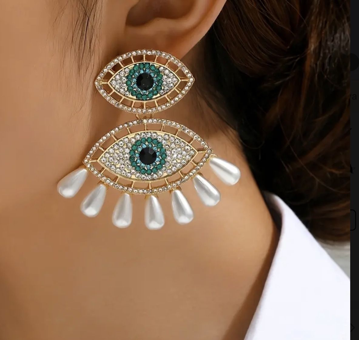 1 Pair 14K Gold Plated Shiny Eye Design Dangle Earrings Embellished with Rhinestones for Daily Outfit Matching and Party Accessories