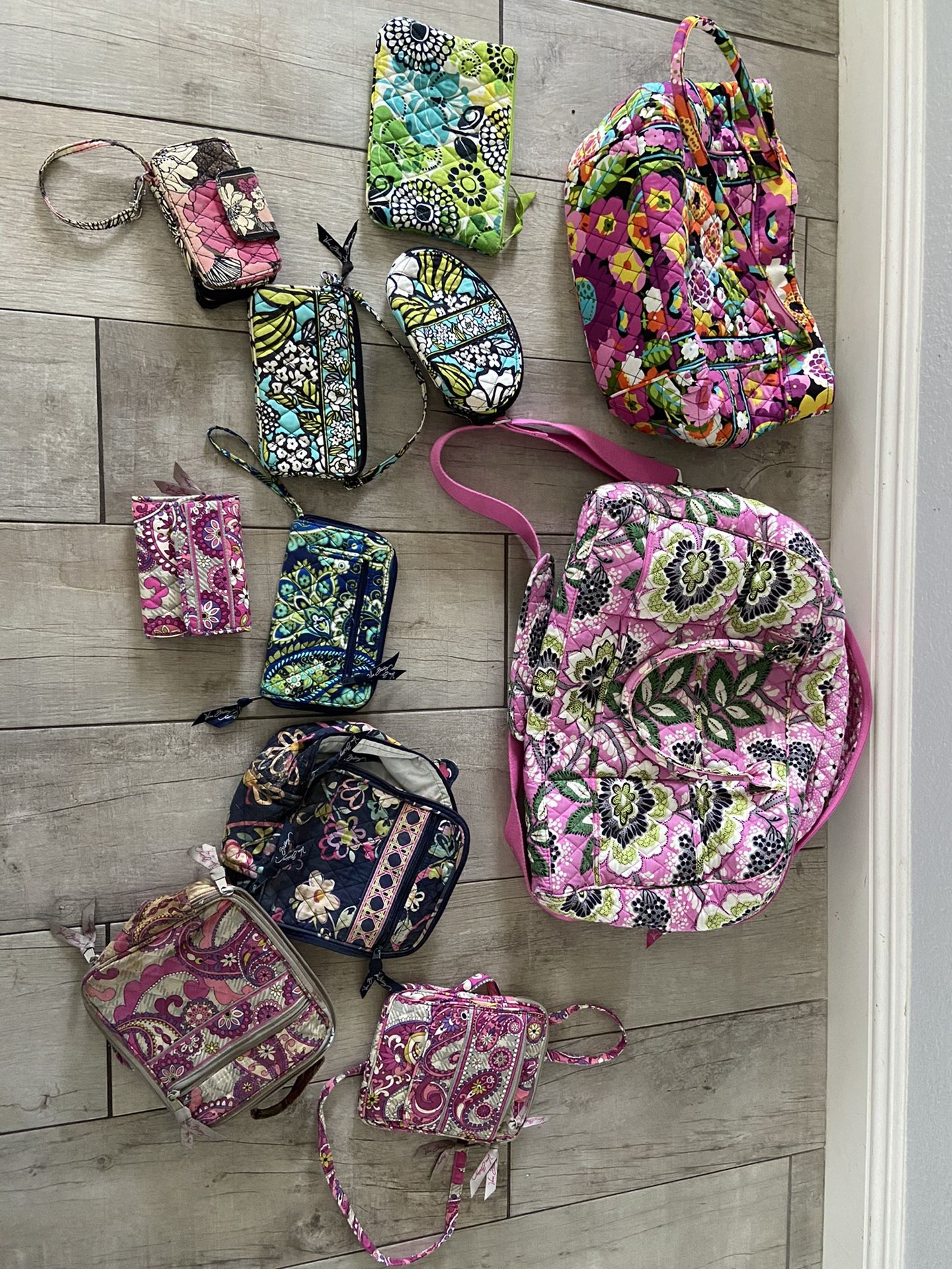 Vera Bradley - - buy more save more $$ - travel bag / duffle bag / diaper bag : $70 - shoulder bag / tote : $40 - backpack with laptop storage :$40 - purse : $25 - wallets : start @ $15 - make-up bags : start @ $15 - lunch bags : $5 (in good condition w/some stains) - all in great condition / zippers work - no damage or tears