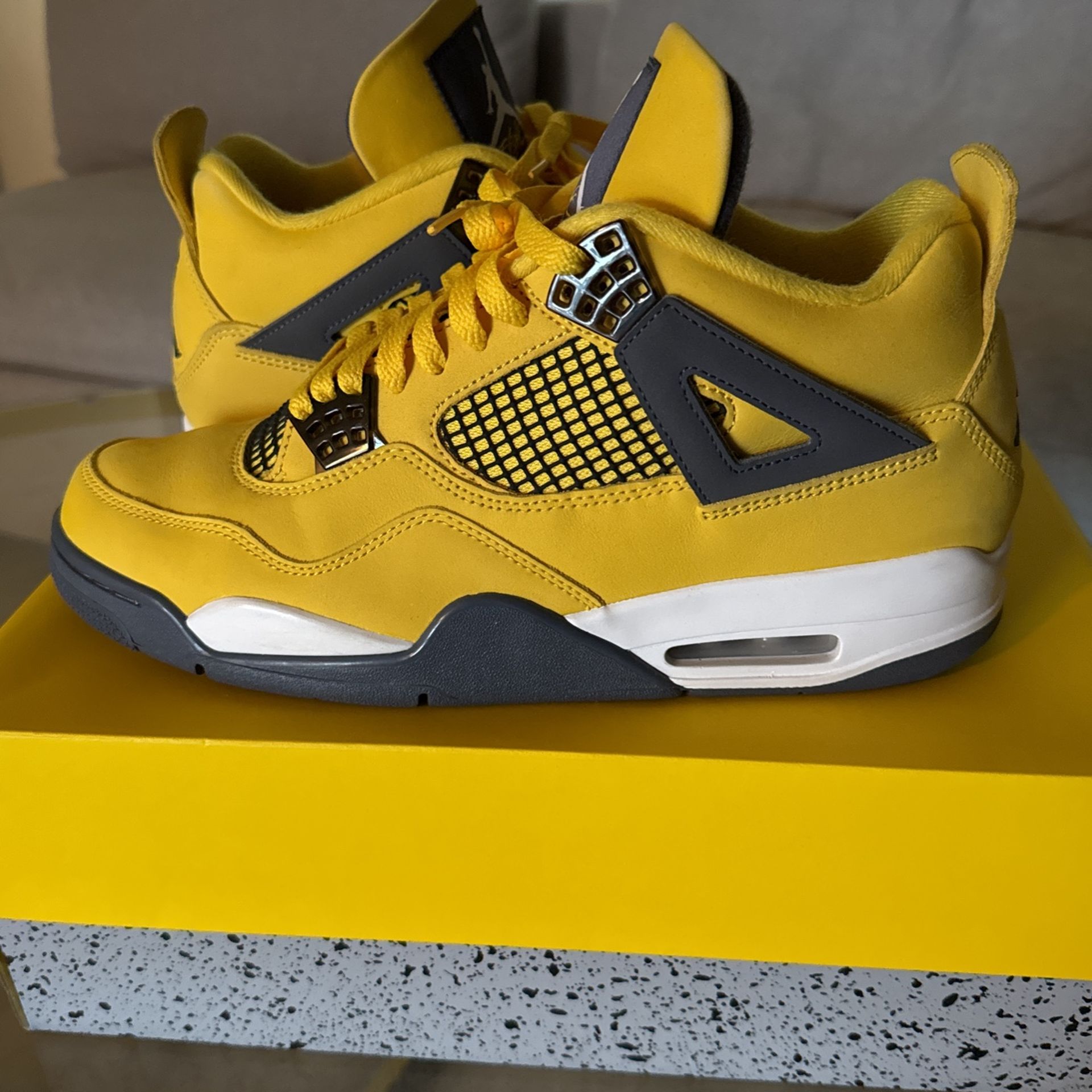 Jordan 4 Lightning’s Ebay authenticated come with tag there is no star loss the suede is clean has been worn a few times so the toe box has some slight creasing as well as heel tab