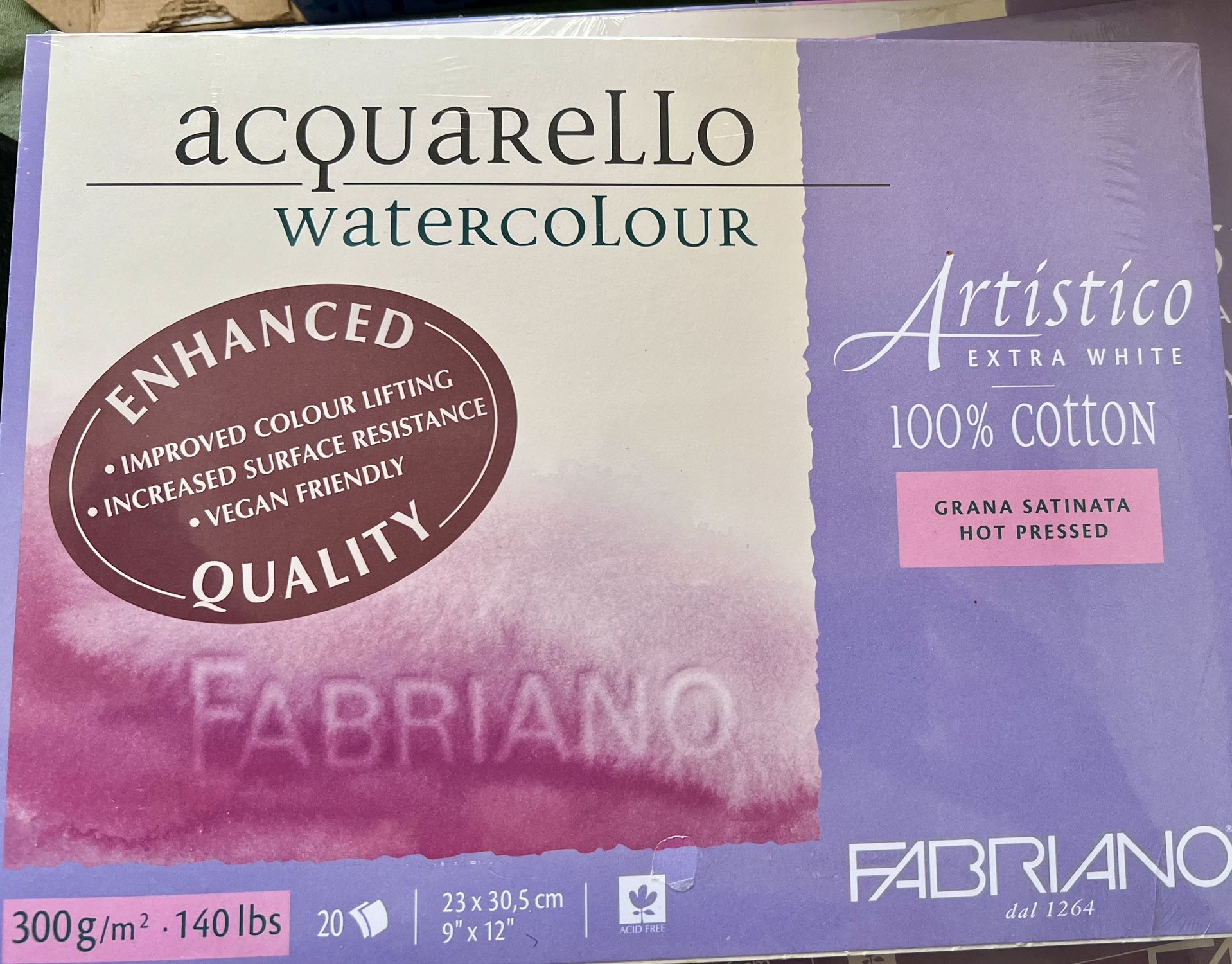 New never opened Fabriano Artistico Watercolor Block Hot Pressed Extra White 9"x12"/140lbs/20sheets Bought at Blick for $33 selling for $23