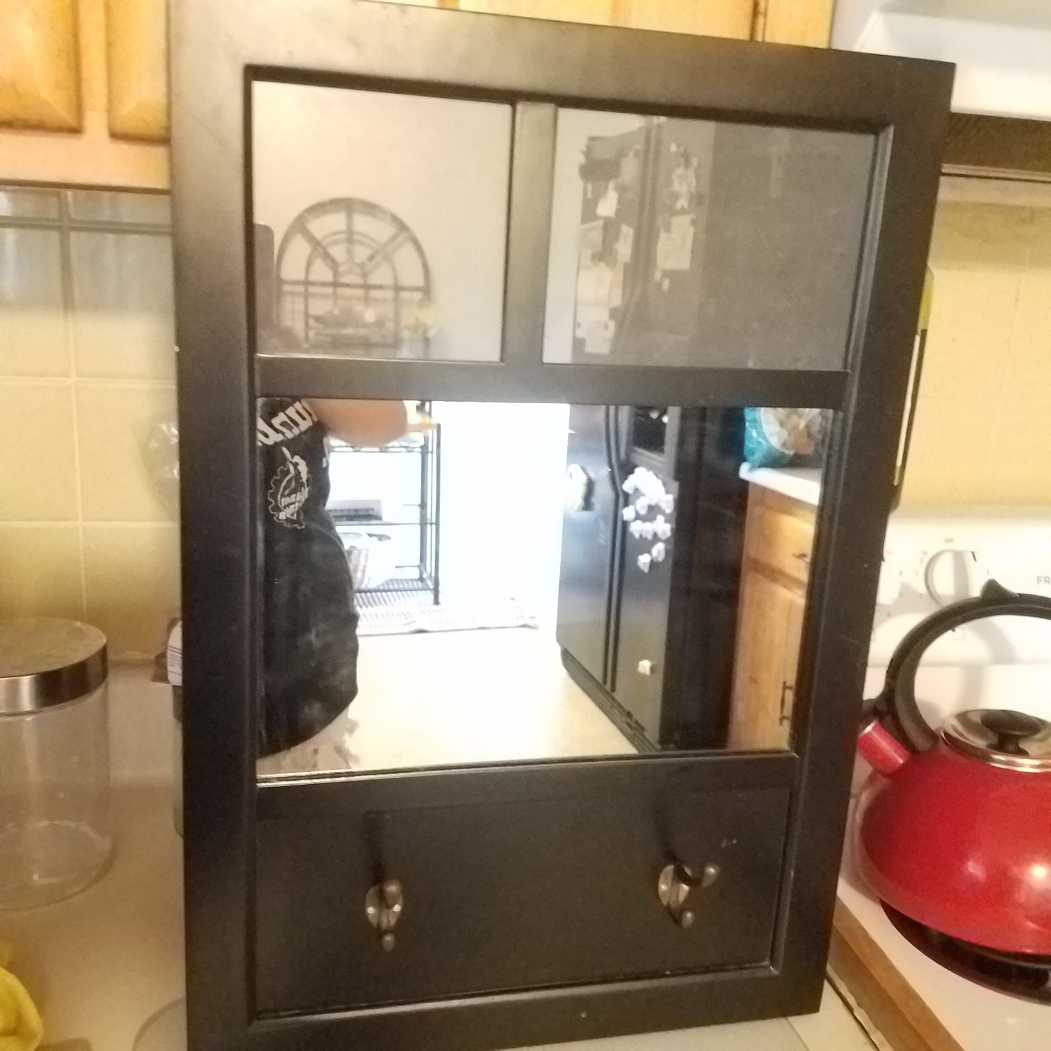 Wall mirror that hold keys and 2 pictures